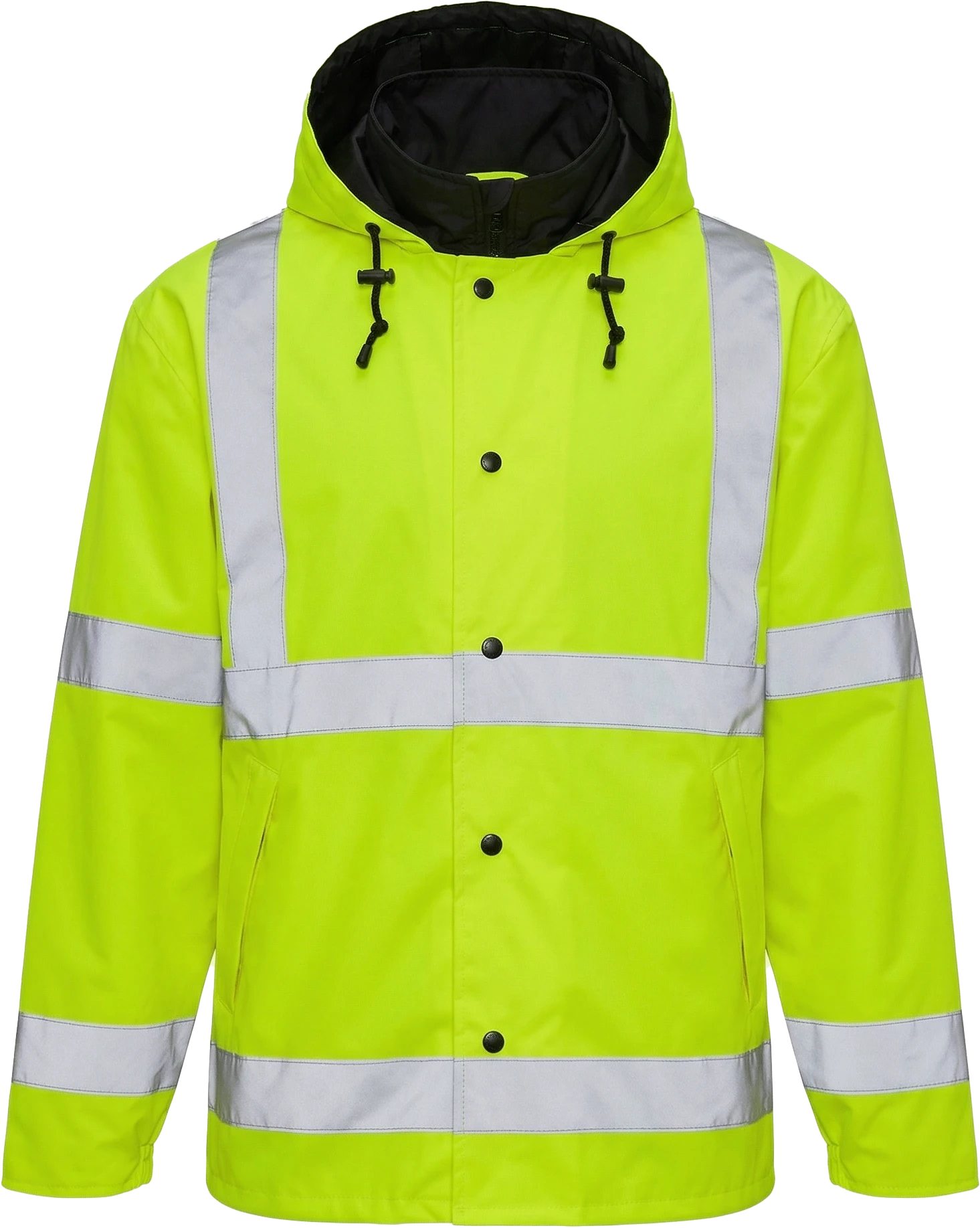 Integrated with horizontal and vertical reflective taping and zippered hand pockets.