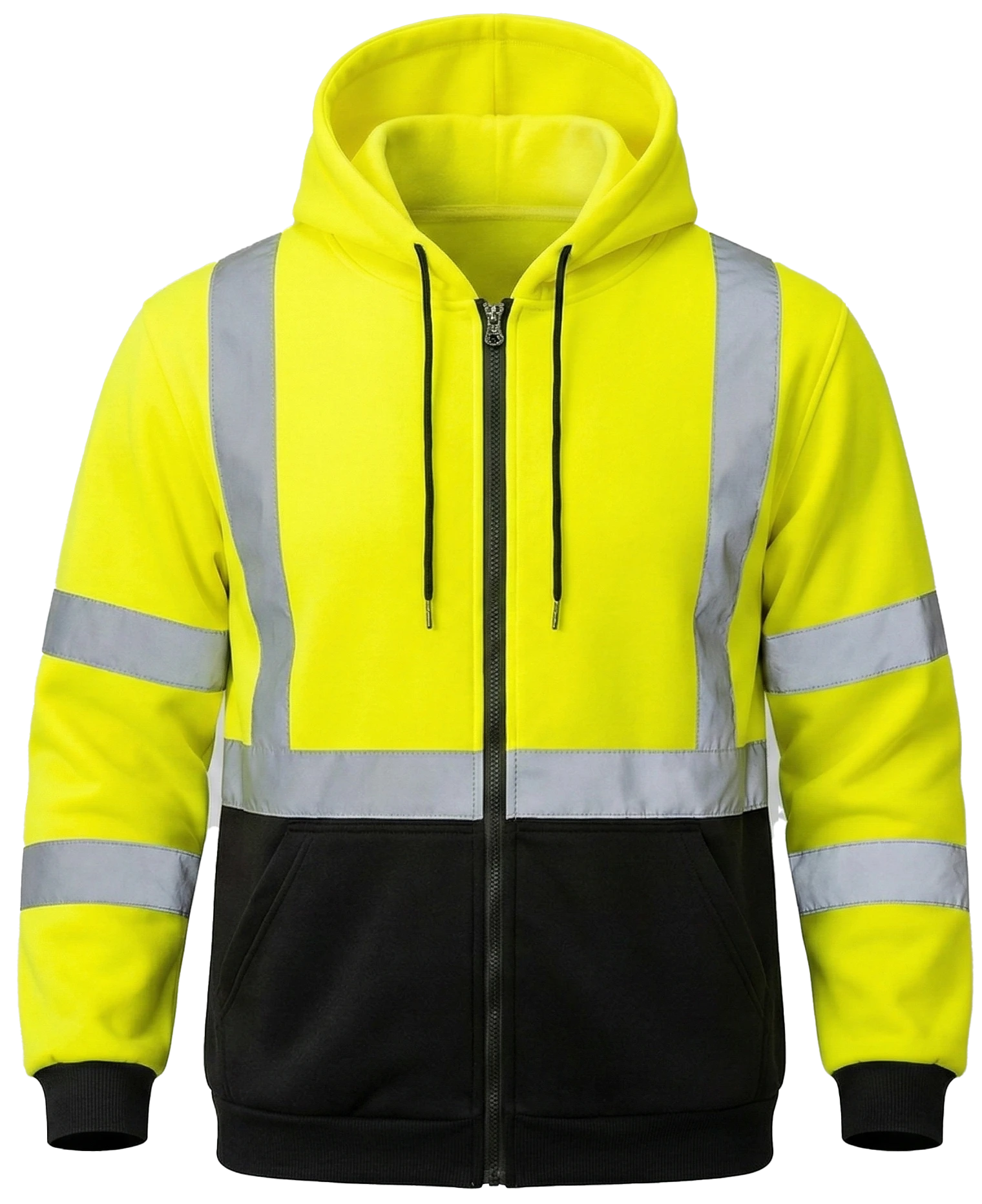 • Available in high-visibility yellow or orange with a black bottom and cuffs to maintain a clean appearance.